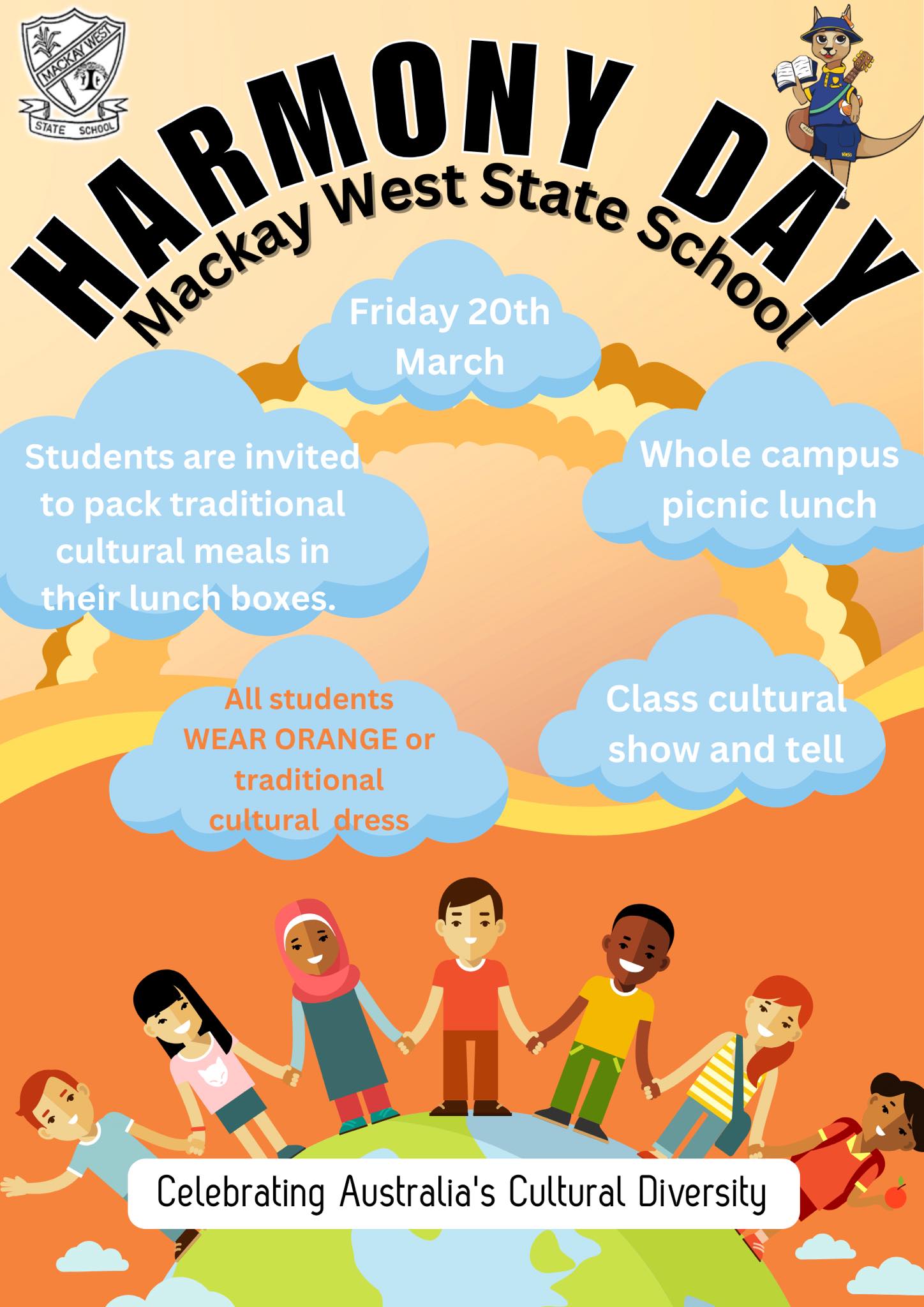 This year we will be celebrating Harmony Day on Friday 20th March. Harmony Week is the celebration that recognises our diversity and brings us together. It is about inclusiveness, respect and a sense of belonging for everyone.
