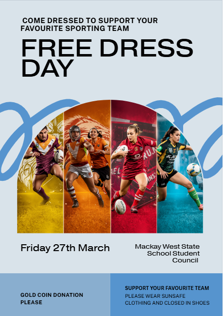 …come dressed to support your favourite sporting team…clothing must be school-appropriate and Sun-Safe, closed-in shoes.